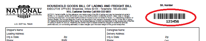 You can find your Bill of Lading number in the upper right hand corner on the Household Goods Bill of Lading and Freight Bill (contract)